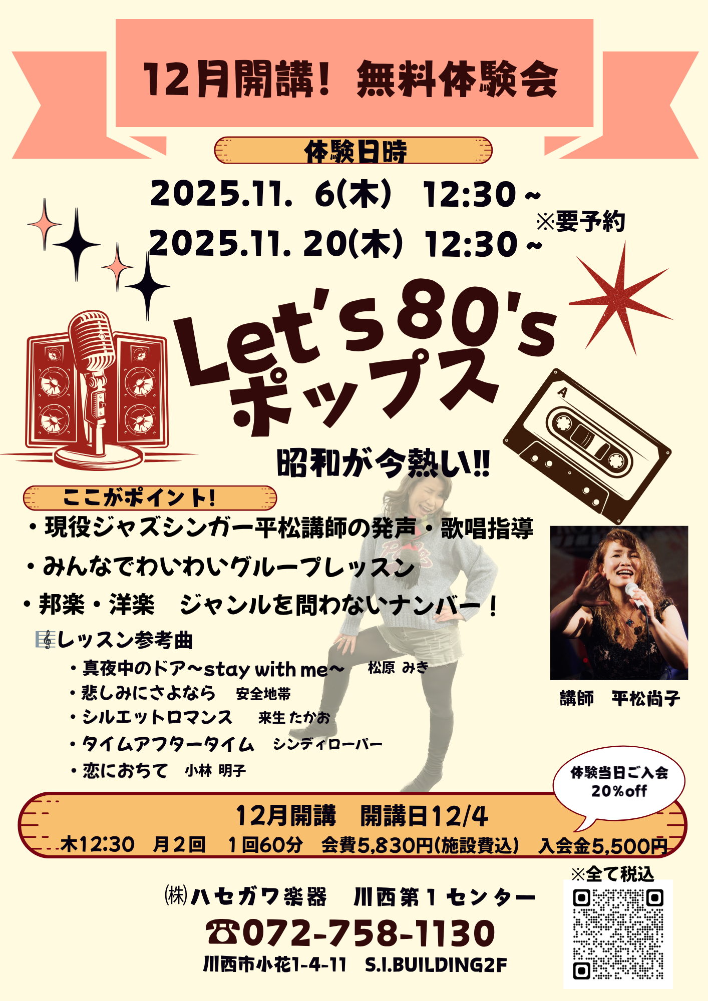 「Let’s 80’s ポップス」無料体験会のお知らせ